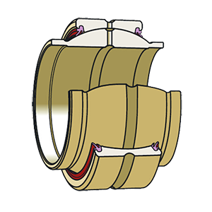 • Sliding contact surfaces: Steel/Steel • Rings: GCr15(100Cr6,SAE52100), case hardened, surface phosphated • outer ring with single axial fracture • with lubrication holes and groove in both rings • sliding contact surfaces cated with molybdenum disulphide ( MoS2 ) • inside and outside diameters and outer ring width as GE..DO • cylindrical extensions on inner ring; As a result,spacers are not required if the bearing is fitted in a clevis • lip seals on both sides • for operating temperatures from –30 °C to +130 °C • for shaft diameters from 17 mm to 80 mm |