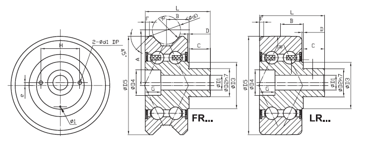 | LR… | Plain roller, eccentric, crowned O.D.(crown radius R=500mm) | |||||||||||||||||||